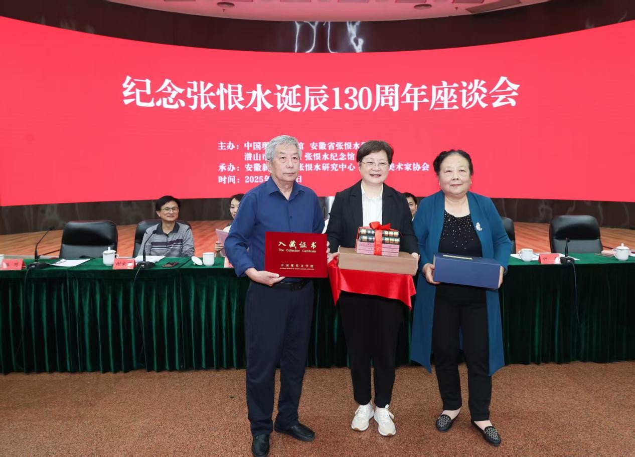 張恨水子女張正、張同深情回憶過往,代表親屬向中國現(xiàn)代文學(xué)館捐贈張恨水手稿、書籍和生前用品,中國現(xiàn)代文學(xué)館副館長計蕾接受捐贈,并頒發(fā)入藏證書。