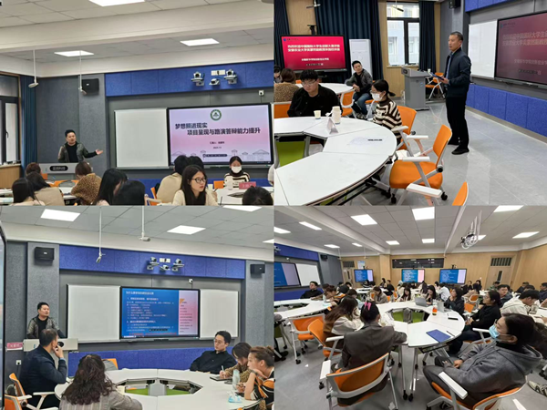 講座中,吳蒙然以“項(xiàng)目PPT制作與路演答辯能力提升”為題展開系統(tǒng)講解,從項(xiàng)目選題、邏輯構(gòu)建、PPT視覺表達(dá)、路演技巧到評(píng)委提問應(yīng)對(duì)策略層層深入,為在場(chǎng)教師代表提供了全面而實(shí)用的指導(dǎo)方法。他強(qiáng)調(diào),優(yōu)秀的項(xiàng)目展示應(yīng)聚焦“為什么做、怎么做、做到哪里、核心競(jìng)爭(zhēng)力”四大核心問題,避免內(nèi)容堆砌與形式化表達(dá),注重?cái)?shù)據(jù)支撐、圖文結(jié)合與邏輯自洽。此外,吳蒙然還結(jié)合歷年國(guó)賽評(píng)審經(jīng)驗(yàn),總結(jié)了評(píng)委針對(duì)“競(jìng)爭(zhēng)分析、技術(shù)壁壘、商業(yè)模式、團(tuán)隊(duì)構(gòu)建、社會(huì)價(jià)值”等高頻提問方向,分享了如何引導(dǎo)從容應(yīng)答、展現(xiàn)項(xiàng)目真實(shí)力與創(chuàng)新點(diǎn)的具體策略。他提出:“路演不是背誦,而是對(duì)話;PPT不是裝飾,而是思維的外化。”