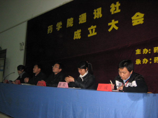 成立大會(huì)上,通訊社指導(dǎo)老師首先宣讀了通訊社首屆學(xué)生成員名單。然后,由藥學(xué)院行政副院長為責(zé)任社長徐歡等同學(xué)頒發(fā)了聘書。接著,通訊社學(xué)生代表作主題發(fā)言,匯報(bào)了本學(xué)期的工作計(jì)劃并號(hào)召全體成員積極配合團(tuán)總支學(xué)生會(huì)的工作,攜手共建藥學(xué)院的美好明天。