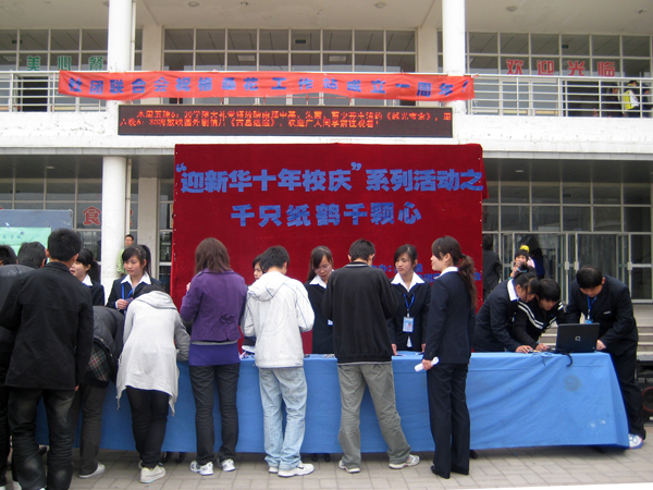 4月8日中午,由藥學(xué)院團(tuán)總支組織的喜迎新華十年校慶系列活動(dòng)之——“千紙鶴千顆心”活動(dòng)在工大食堂廣場(chǎng)圓滿(mǎn)結(jié)束。