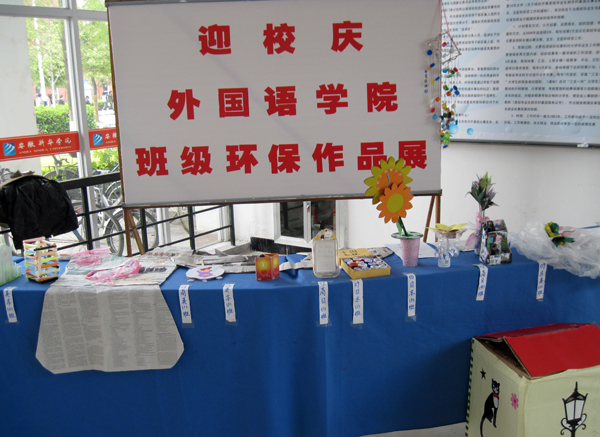 4月13日,外國(guó)語學(xué)院團(tuán)總支學(xué)生會(huì)生活部組織各班級(jí)舉辦了一次班級(jí)環(huán)保作品展。
