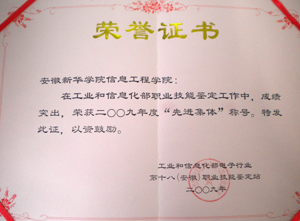 近日,信息工程學(xué)院在工業(yè)和信息化部職業(yè)技能鑒定工作中,成績突出,榮獲2009年度“先進(jìn)集體”稱號。