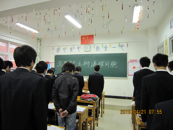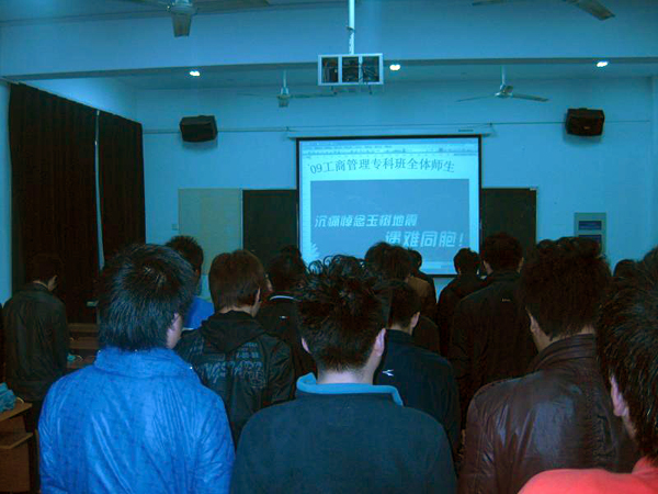 4月21日上午10時許,我院師生共同舉行哀悼儀式,為青海玉樹遇難同胞默哀。他們共同為地震災區(qū)祈福,愿逝者安息,生者堅強。 (土木與工業(yè)工程學院、繼續(xù)教育學院)