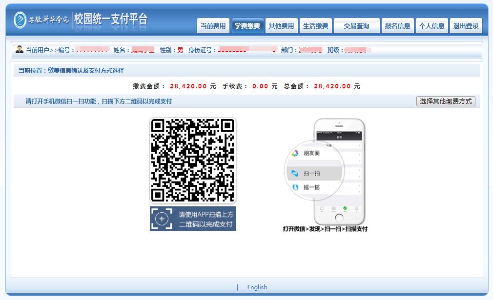 支付寶:手機(jī)支付寶掃描“繳費(fèi)平臺(tái)”支付寶二維碼;