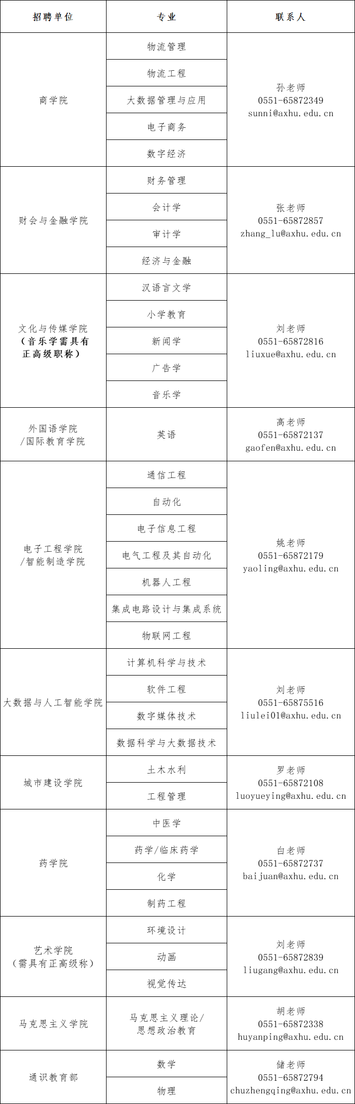 應(yīng)聘者將個(gè)人簡歷以及學(xué)歷、職稱證明等材料發(fā)送至所在專業(yè)對(duì)應(yīng)的二級(jí)學(xué)院聯(lián)系郵箱。