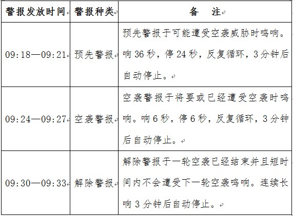 關于舉行“9.18”防空警報試鳴的通告