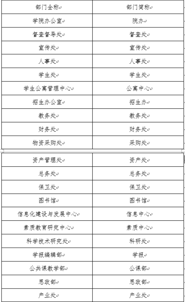 (2)請各位老師登錄OA下載附件《員工部門名稱對照表》,確認各自部門簡稱;部門內(nèi)部存在重名現(xiàn)象的教師請于9月7日11:00前聯(lián)系丁瑋老師,提前登記區(qū)別信息,如:張三1、張三2。
