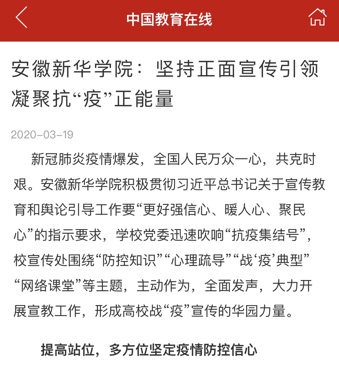 安徽新華學(xué)院:堅持正面宣傳引領(lǐng) 凝聚抗“疫”正能量