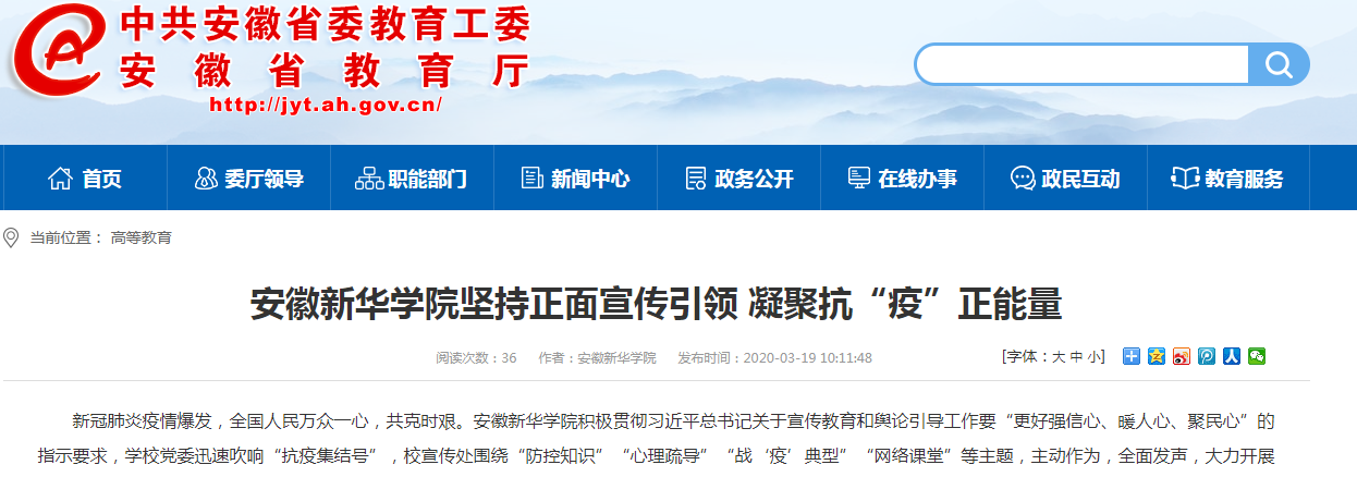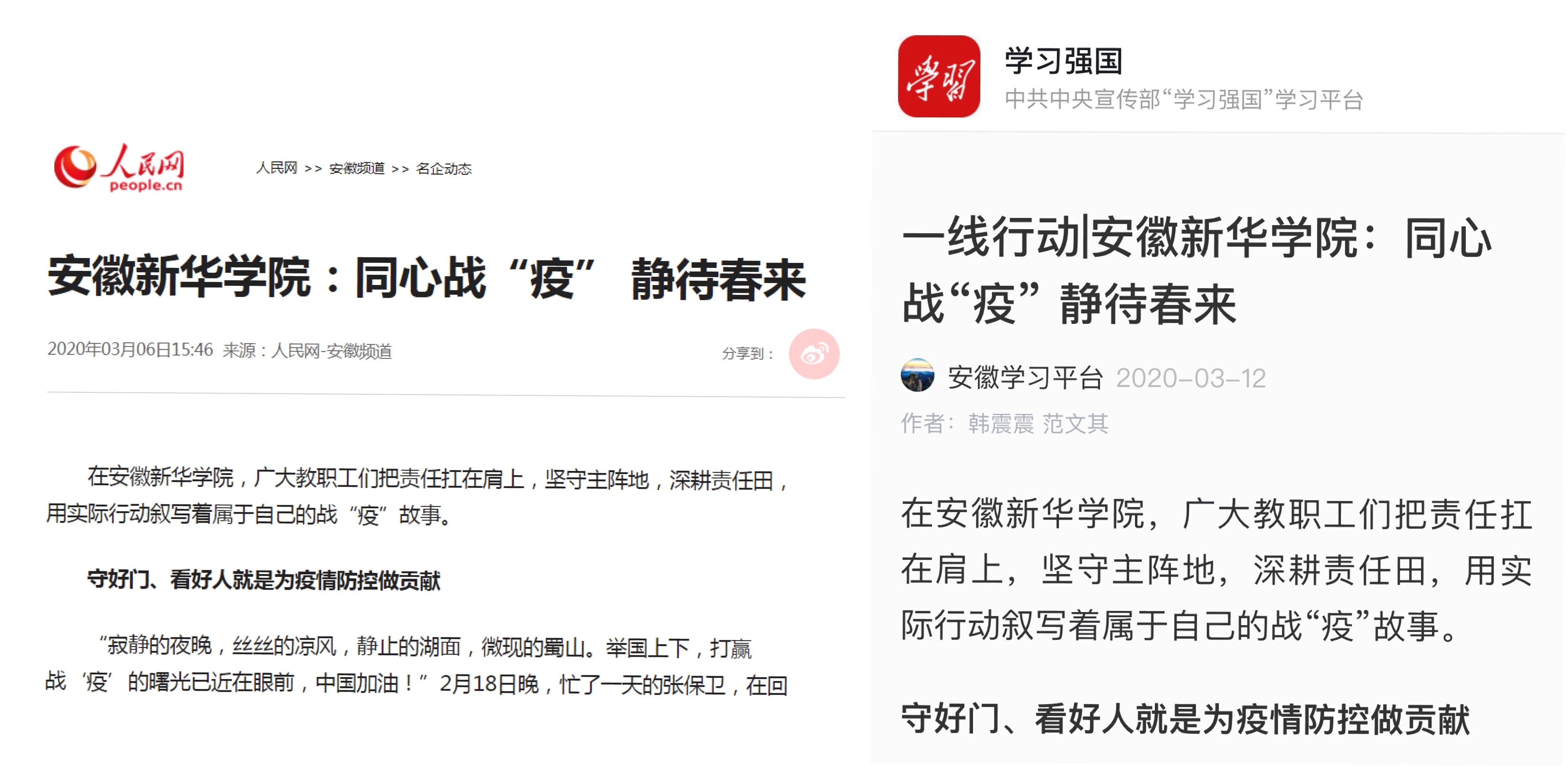 多家主流媒體對安徽新華學(xué)院:堅持正面宣傳引領(lǐng) 凝聚抗“疫”正能量進行全面報道