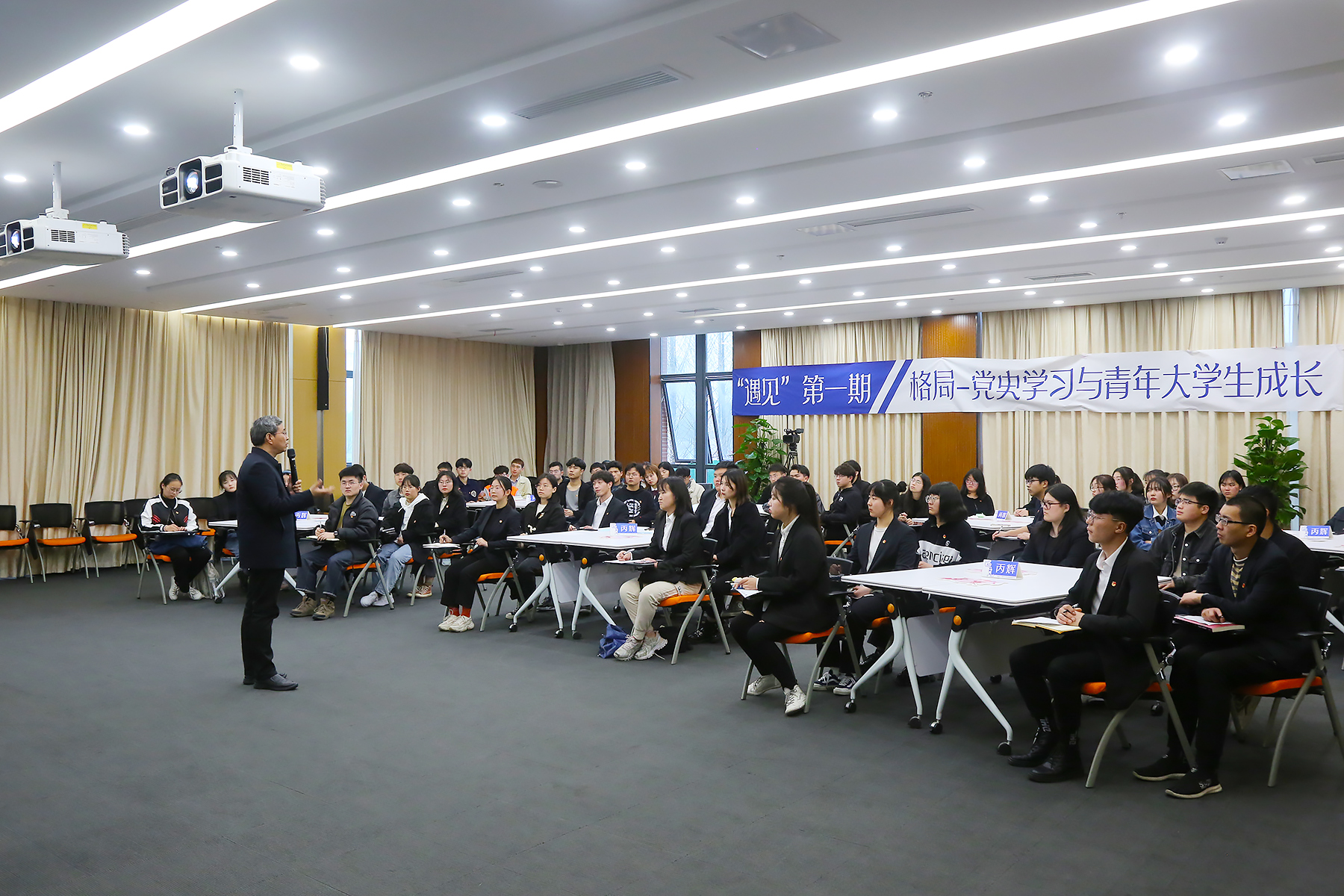 3月15日,我校邀請安徽師范大學馬克思主義學院路丙輝教授為青年學生作了一場名為“格局-黨史學習與青年大學生成長”的主題講座。各學院、社團組織學生參與聽講?,F(xiàn)場氣氛活躍,同學們熱情高漲。