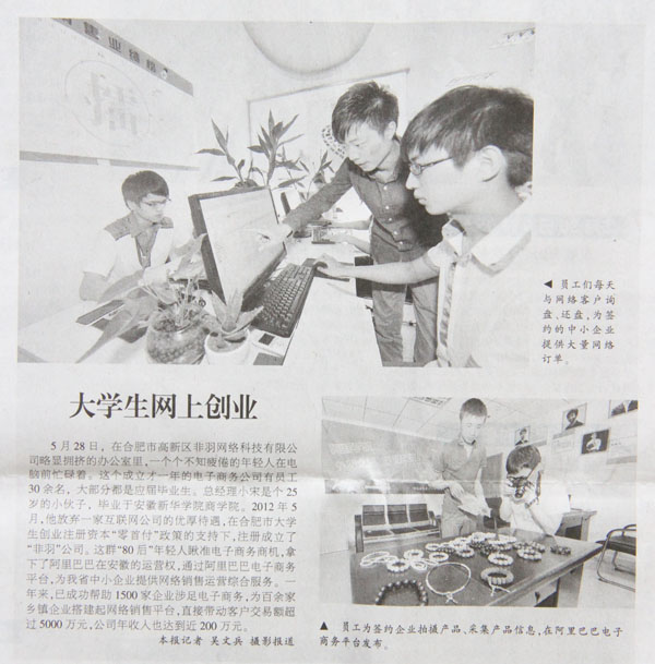 安徽日?qǐng)?bào):大學(xué)生網(wǎng)上創(chuàng)業(yè)