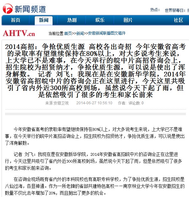 安徽衛(wèi)視:2014高招——爭搶優(yōu)質生源 高校各出奇招