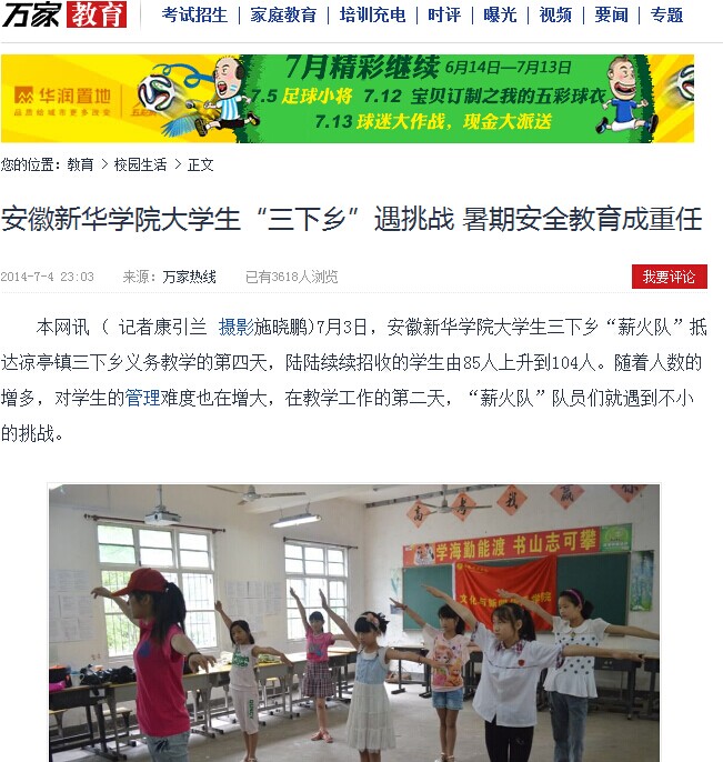 萬家熱線:安徽新華學(xué)院大學(xué)生“三下鄉(xiāng)”遇挑戰(zhàn) 暑期安全教育成重任