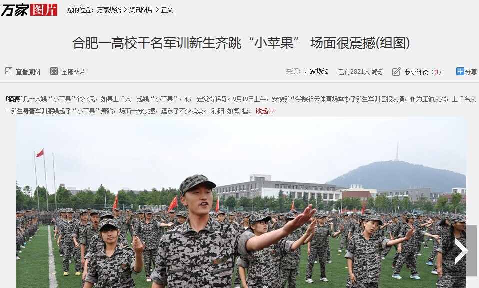 萬(wàn)家熱線:合肥一高校千名軍訓(xùn)新生齊跳“小蘋(píng)果” 場(chǎng)面很震撼