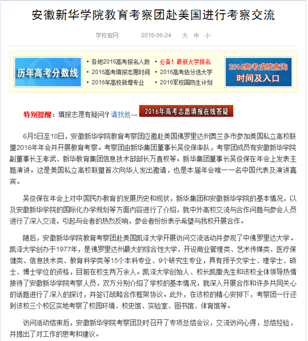中國教育在線、搜狐網(wǎng)、萬家熱線:安徽新華學(xué)院教育考察團(tuán)赴美國進(jìn)行考察交流