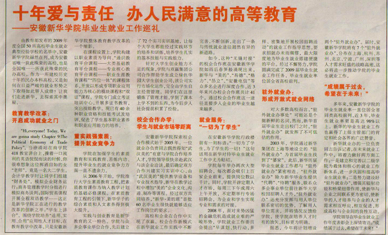 2010年6月25日,安徽商報(bào)/07/獨(dú)家報(bào)道/調(diào)查版,對(duì)我院畢業(yè)生就業(yè)工作情況進(jìn)行了相關(guān)報(bào)道。