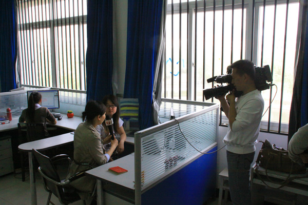 正逢動(dòng)漫學(xué)院成立一周年,4月26日,安徽電視臺(tái)公共頻道《新聞第一線》欄目組到動(dòng)漫學(xué)院拍攝素材,報(bào)道我院動(dòng)漫制作流程和動(dòng)漫專業(yè)發(fā)展情況,并在當(dāng)晚的《新聞第一線》欄目播出。圖為拍攝現(xiàn)場(chǎng)。