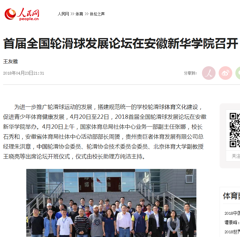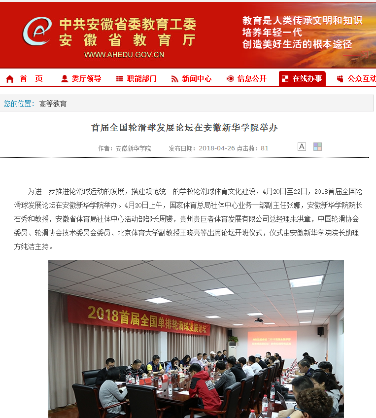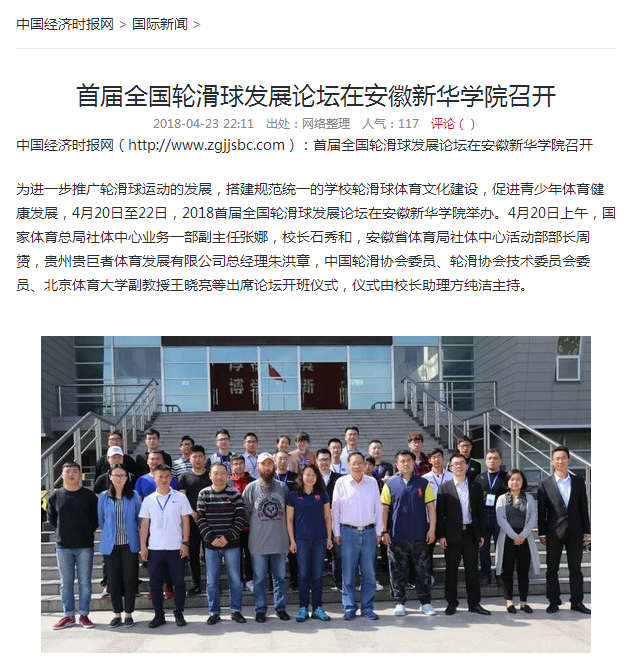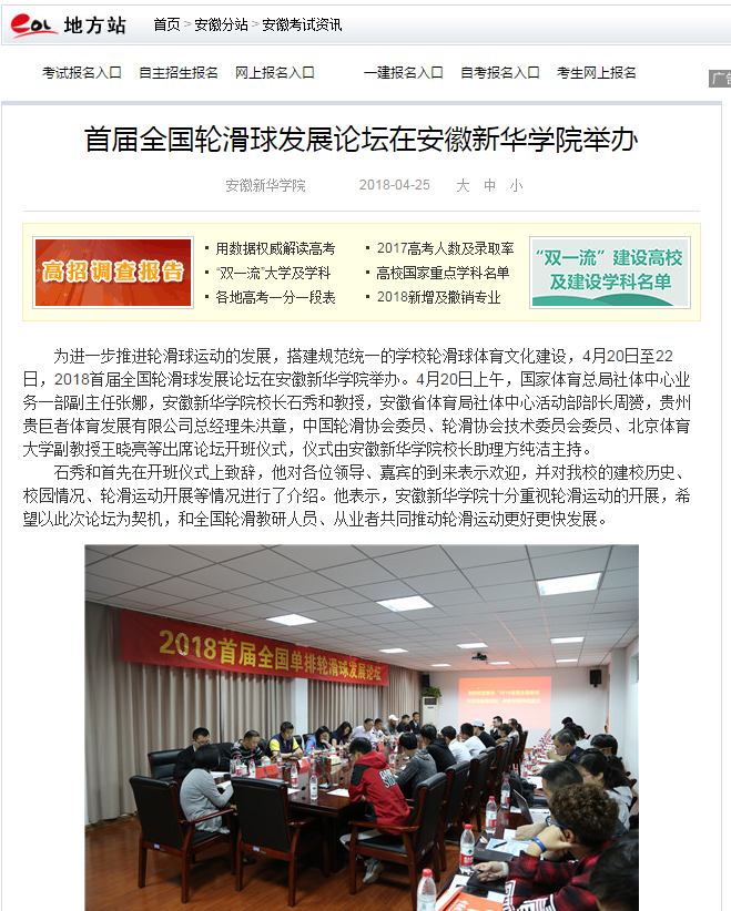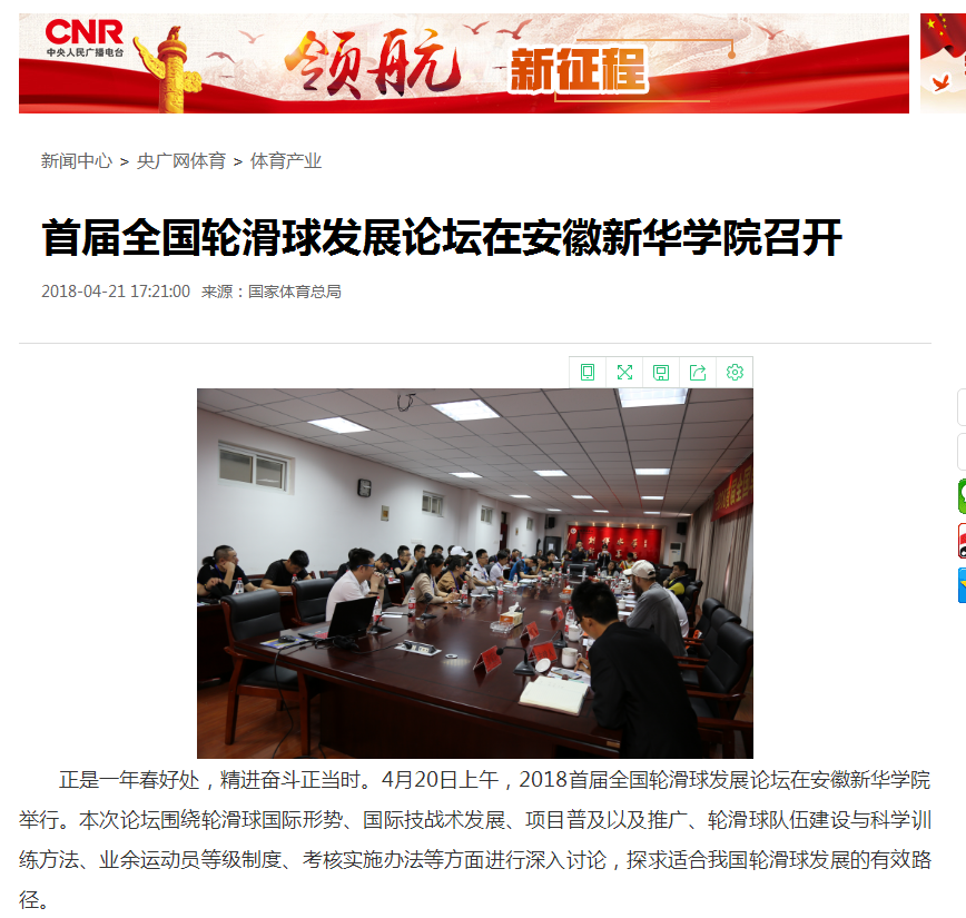 人民網(wǎng)、央廣網(wǎng)、中國教育在線、國家體育總局、安徽教育網(wǎng)、中國經(jīng)濟時報網(wǎng)、體壇網(wǎng)、網(wǎng)易、搜狐網(wǎng):首屆全國輪滑球發(fā)展論壇在安徽新華學院召開