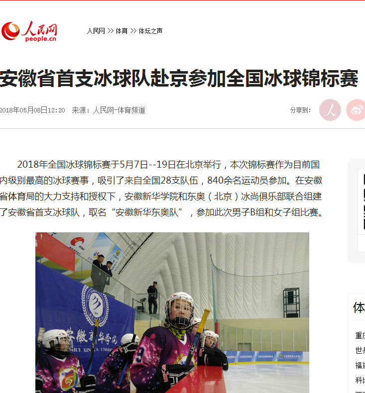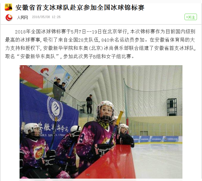 人民網(wǎng)、東方體育新聞、強(qiáng)國論壇、今日頭條、搜狐網(wǎng)、新浪看點(diǎn):安徽省首支冰球隊(duì)赴京參加全國冰球錦標(biāo)賽