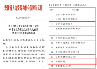 - 2025-04-12我校獲批安徽省博士后科研工作站