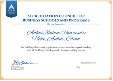 - 2024-12-28成功加入!我校成為美國(guó)商學(xué)院認(rèn)證委員會(huì)(ACBSP)會(huì)員單位