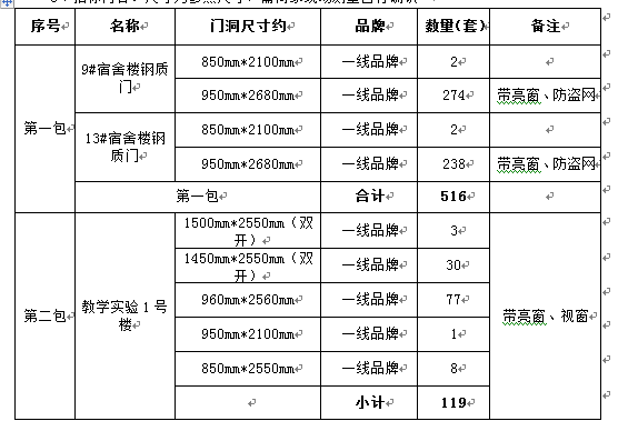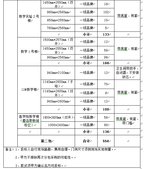 2、項目名稱:《宿舍樓、教學樓(實驗)鋼質(zhì)門供貨及安裝項目》