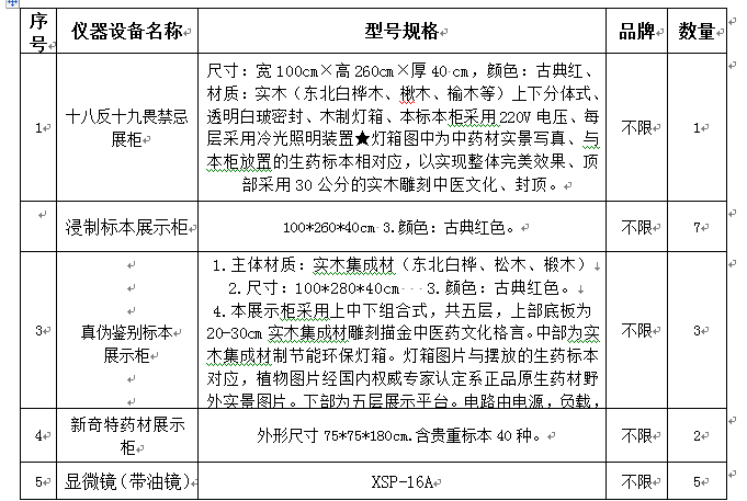 第一部分:藥用植物標(biāo)本實驗室(以下清單規(guī)格型號、參數(shù)僅供參考)