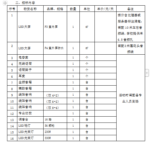 舞美設(shè)備租賃服務(wù)年度集中采購(gòu)招標(biāo)報(bào)價(jià)公告