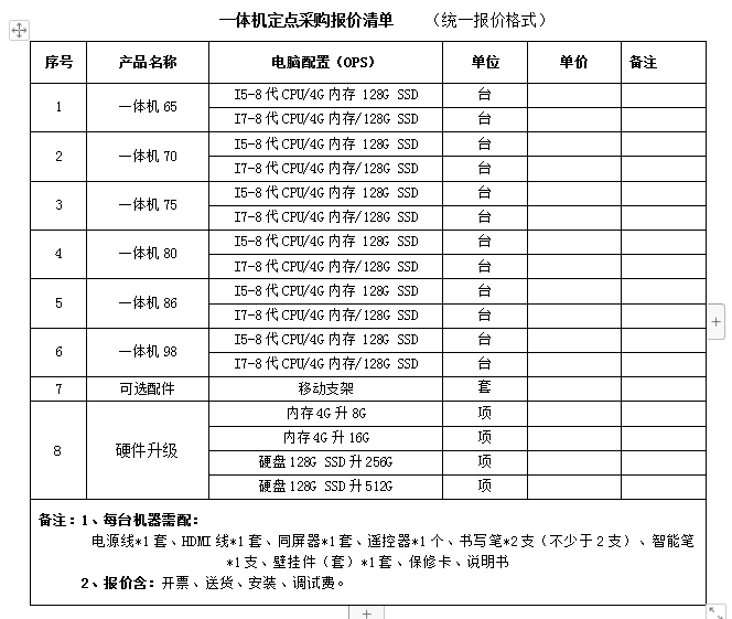 1、項目名稱:《大屏一體機》年度定點采購項目