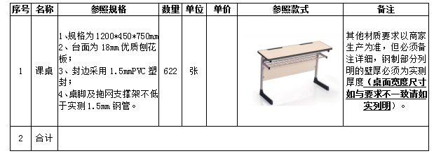 二、招標(biāo)內(nèi)容:教師課桌622張