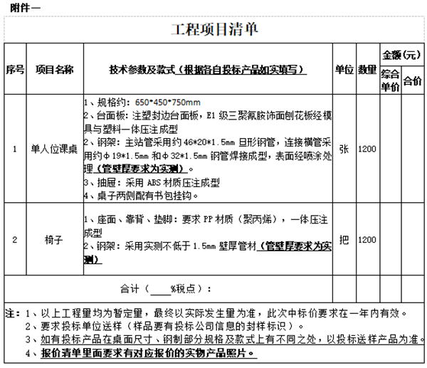 單人位課桌椅項(xiàng)目招標(biāo)詢價(jià)公告