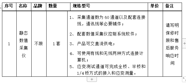1、項(xiàng)目名稱:靜態(tài)數(shù)值采集儀采購項(xiàng)目
