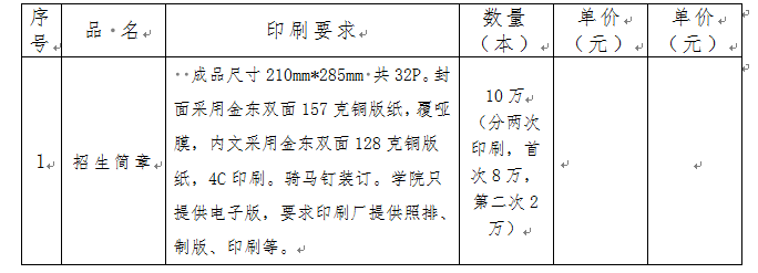 1、報(bào)價(jià)表(必須密封):報(bào)出每種規(guī)格印刷品的單價(jià)和總價(jià)及合計(jì)總價(jià)(含稅、送貨上門價(jià));