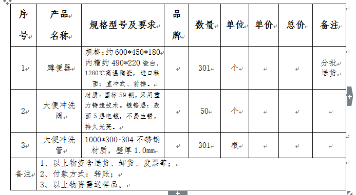 2、詢價內(nèi)容:蹲便器、大便沖洗閥、大便沖洗管(要求品質(zhì)優(yōu)越)。