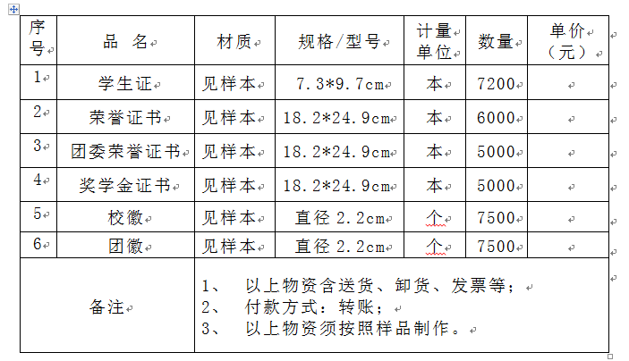 根據(jù)我校工作計(jì)劃,現(xiàn)就學(xué)生證、榮譽(yù)證書、?;盏炔少忢?xiàng)目進(jìn)行公開詢價(jià),歡迎符合條件的優(yōu)質(zhì)供應(yīng)商積極參與。