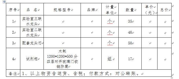 2、詢價(jià)項(xiàng)目:試劑柜、三聯(lián)水龍頭、二聯(lián)水龍頭、龍頭芯。