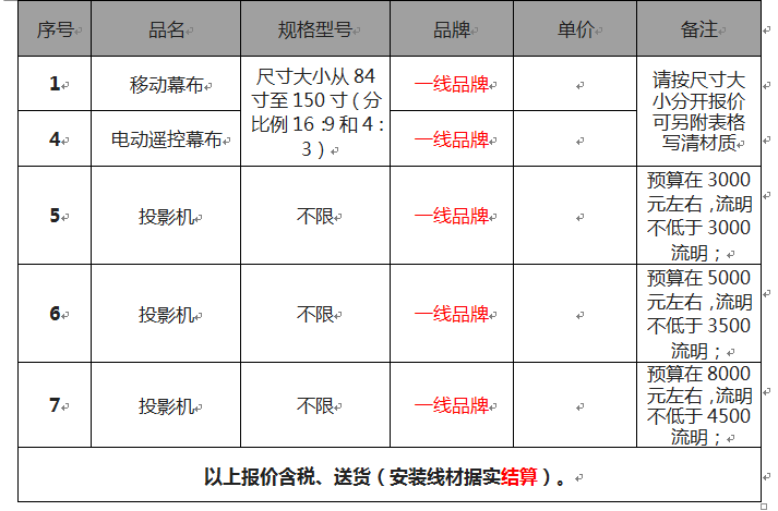 根據(jù)2017年教學計劃,現(xiàn)就我院多媒體投影機及幕布一批物資進行詢價采購,歡迎符合條件的優(yōu)質供應商積極參與。