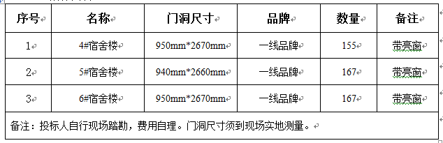 2、項目名稱:《4#、5#、6#宿舍樓鋼質(zhì)門項目》