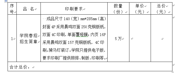 備注:打包要求,招生簡章按100本打包。
