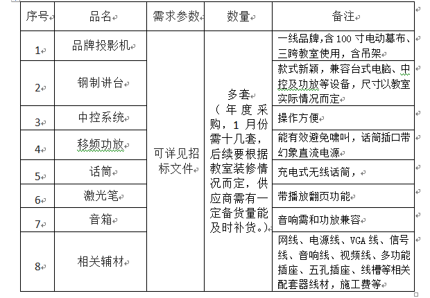 2、履行合同所需的任何項目若未有明確加在所列價款中,該部分有關費用應視作包括在投標報價之內(如運送、設計、調試安裝等);