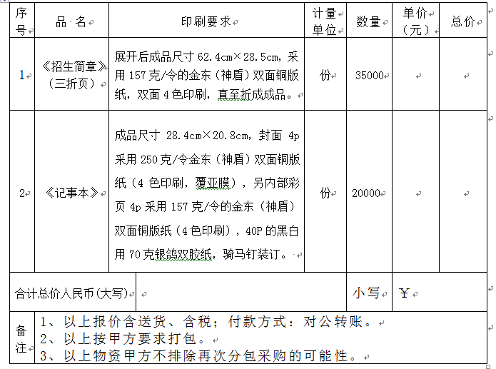 2、詢價項目:《招生簡章》、《招生宣傳記事本》。