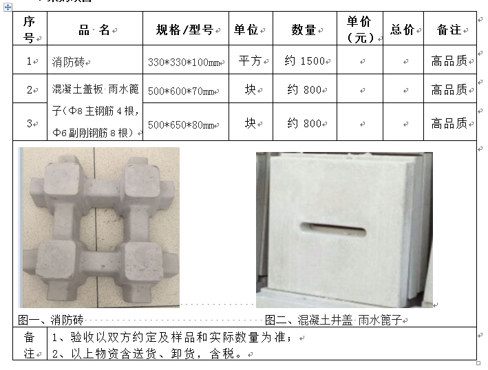 2、招標(biāo)項(xiàng)目:消防磚、混凝土蓋板 雨水篦子項(xiàng)目