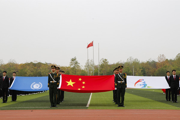 在莊嚴的升國旗儀式之后,校長石秀和致開幕辭。他代表學(xué)校對本屆運動會的順利召開表示熱烈的祝賀,向踴躍參加運動會的運動員和裁判員致以誠摯的問候,向為運動會各項活動付出辛勤勞動的工作人員表示衷心的感謝。石秀和指出,當(dāng)前學(xué)校正在加快推進“121工程”,全面加強內(nèi)涵建設(shè),完善人才培養(yǎng)體系,提高人才培養(yǎng)能力。這次運動會也將進一步提高我校體育運動的整體水平,幫助同學(xué)們在體育鍛煉中享受樂趣、增強體質(zhì)、健全人格、錘煉意志,為成為德智體美勞全面發(fā)展的社會主義建設(shè)者和接班人打下基礎(chǔ)。同時,石秀和提出幾點希望:希望全體運動員保持昂揚向上的狀態(tài)和追求卓越的精神,賽出風(fēng)格、賽出水平、賽出友誼;希望全體運動員發(fā)揚團結(jié)、友愛、奮進的良好作風(fēng),弘揚更高、更快、更強的體育精神;希望全體裁判員堅持公開、公平、公正的原則,牢固樹立安全第一的意識,確保競賽順利進行;希望大會工作人員各司其職、通力合作,完成好賽事的服務(wù)與保障工作;希望全校教職員工把體育運動當(dāng)作一種習(xí)慣,讓身心健康成為一種追求,積極投身到體育鍛煉中去。石秀和以“青年興則國家興,青年強則國家強”勉勵全體學(xué)生,希望同學(xué)們將頑強拼搏,永不服輸?shù)捏w育精神發(fā)揚光大,不忘今日之初心,牢記未來之使命,成就最完美的自己。