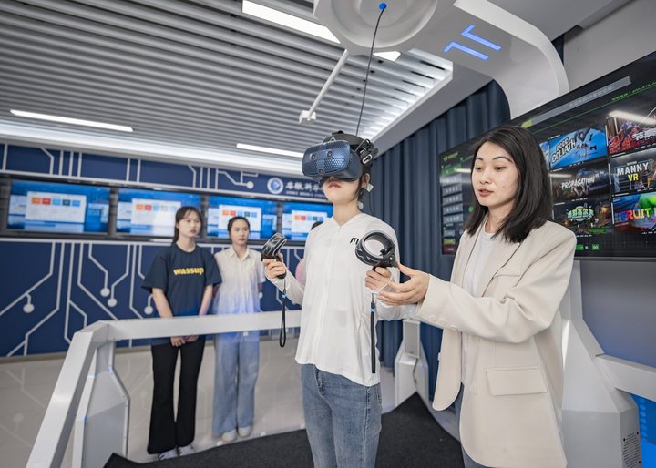 人工智能應用創(chuàng)新實驗室突破傳統(tǒng)教學實驗室的功能邊界,以學生創(chuàng)新項目培育為核心定位,通過場景化功能分區(qū)構建全周期創(chuàng)新支持體系。實驗室按功能劃分為成果展示區(qū)、VR 作品發(fā)布測試體驗區(qū)、象棋對弈機器人體驗區(qū)和頭腦風暴研討區(qū)四大特色區(qū)域。
