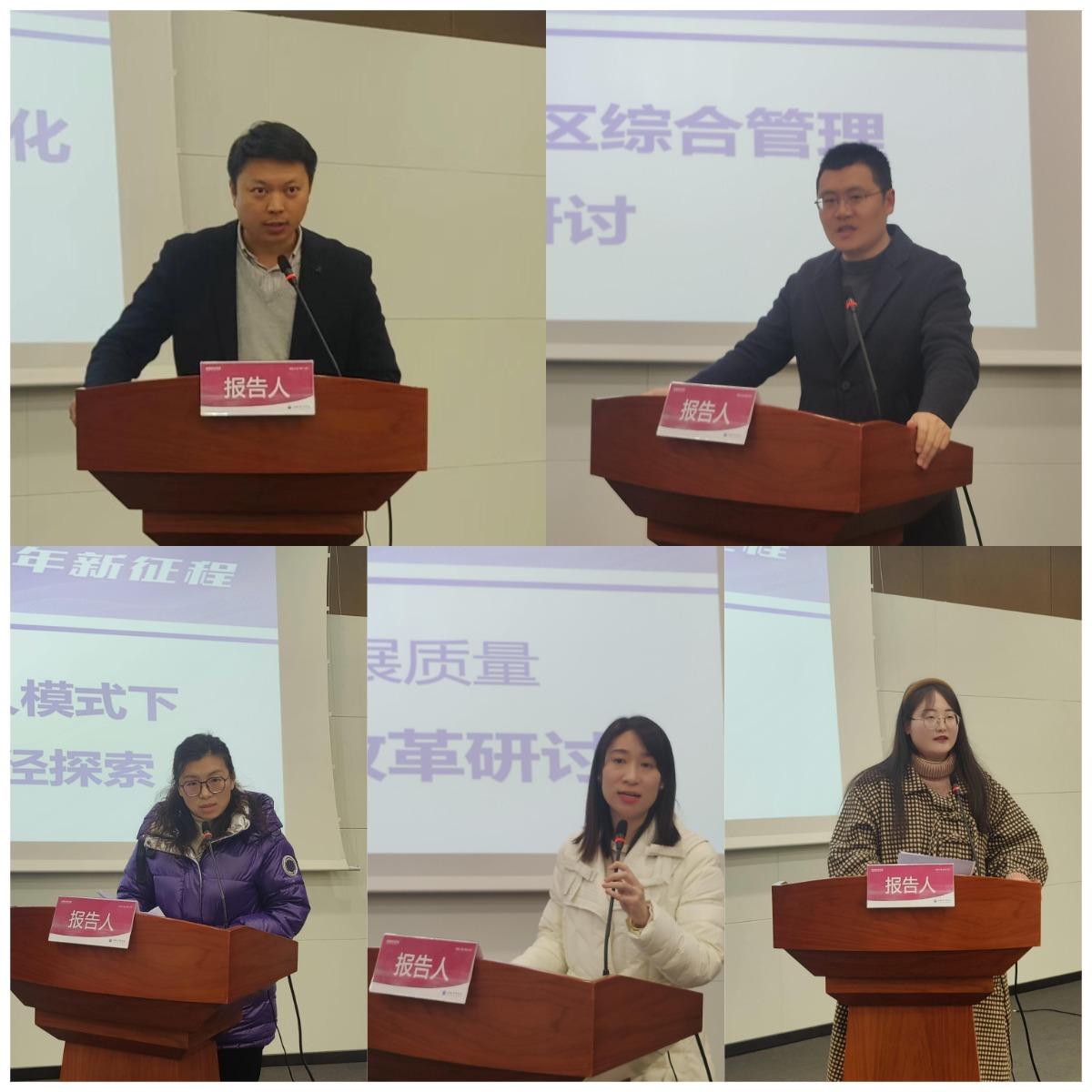 分組研討圍繞《高校輔導(dǎo)員職業(yè)化、專業(yè)化、專家化成長路徑的思考》《“一站式”學(xué)生社區(qū)綜合管理模式建設(shè)》《五育并舉融合育人模式下學(xué)生高質(zhì)量就業(yè)的路徑探索》《聚焦立德樹人提升發(fā)展質(zhì)量——第二課堂成績單制度改革》《班級管理中加強(qiáng)大學(xué)生安全教育的有效途徑探究》等五個(gè)議題展開討論。各組圍繞不同主題展開討論,共同探討解決實(shí)際工作中面臨的問題和挑戰(zhàn),討論結(jié)束后各組代表將討論成果進(jìn)行了集中匯報(bào)。朱平教授對匯報(bào)進(jìn)行了點(diǎn)評,他以“什么是好問題”引導(dǎo)全體學(xué)工人員要善于思考工作中遇到的痛點(diǎn)、難點(diǎn)和堵點(diǎn),將所學(xué)的知識轉(zhuǎn)化為所用、轉(zhuǎn)化為能力、德行和智慧,通過解決實(shí)際問題提升個(gè)人的素質(zhì)能力,從而提高輔導(dǎo)員工作的高質(zhì)量。
