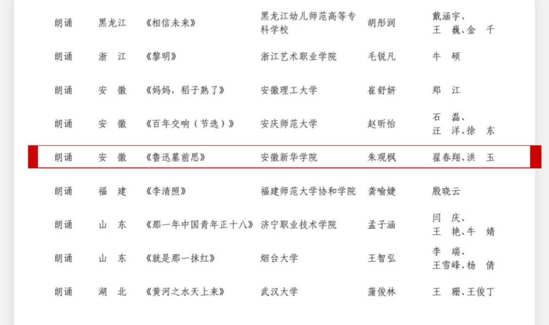 本網(wǎng)訊 (通訊員:翟春翔)近日,教育部、湖北省政府主辦的以“厚植家國情懷,涵養(yǎng)進(jìn)取品格”為主題的全國第七屆大學(xué)生藝術(shù)展演活動在襄陽市舉辦。我校文化與傳媒學(xué)院2020級播音與主持藝術(shù)專業(yè)學(xué)生朱觀楓憑借朗誦作品《魯迅墓前思》在眾多參賽選手中脫穎而出,榮獲個人專項(xiàng)獎。