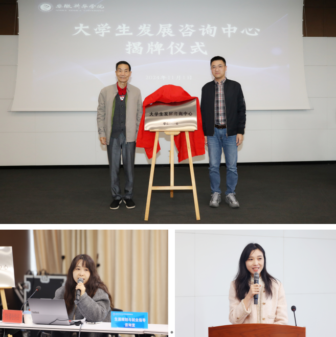 隨后,王琦進和朱平共同為“安徽新華學(xué)院大學(xué)生發(fā)展咨詢中心”揭牌,學(xué)生處副處長王強亞介紹了大學(xué)生發(fā)展咨詢中心“黨團建設(shè)與班級管理”“科技創(chuàng)新與創(chuàng)業(yè)指導(dǎo)”“人際交往與社會成長”等六個輔導(dǎo)員工作室的工作職責和運行模式。“學(xué)海導(dǎo)航”輔導(dǎo)員工作室負責人汪涵涵作為代表發(fā)言。