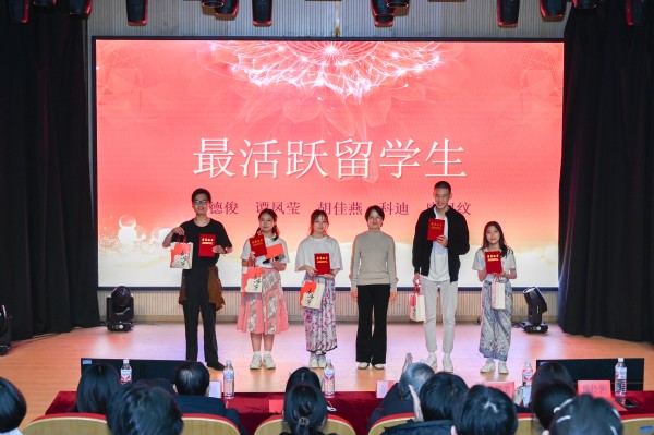 施伶俐上臺(tái)為“最活躍留學(xué)生”頒發(fā)榮譽(yù)證書及獎(jiǎng)品,這些留學(xué)生在校園活動(dòng)、社團(tuán)組織中積極參與,充分展現(xiàn)了青春活力與熱情。