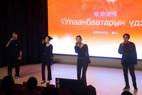 蒙古學(xué)生的歌曲演唱深情悠揚(yáng),獨(dú)特的嗓音和民族風(fēng)格的旋律,仿佛將大家?guī)У搅藦V袤的蒙古草原,讓聽眾沉浸在濃郁的異域文化之中,感受著蒙古國的獨(dú)特魅力。