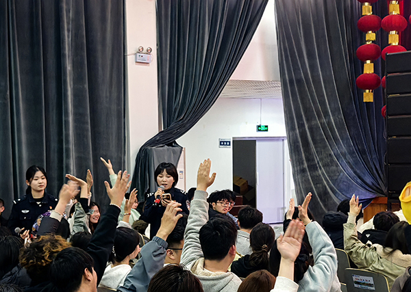 李萱則通過"場(chǎng)景模擬+有獎(jiǎng)競(jìng)答"的互動(dòng)形式,將網(wǎng)購詐騙、冒充客服、刷單兼職等八大校園高發(fā)電詐類型轉(zhuǎn)化為具體情境案例。在熱烈的問答互動(dòng)中,學(xué)生積極參與詐騙話術(shù)拆解、風(fēng)險(xiǎn)行為識(shí)別等實(shí)操訓(xùn)練,20名正確應(yīng)答者獲得警方定制的反詐小禮品。